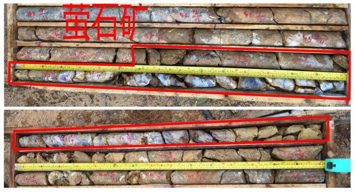 萤石、硼矿资源是我国重要的非金属矿产资源,其应用领域广泛。江西赣南-福建西北地区是我国萤石等非金属矿产集中分布区。近日,自然资源部中国地质调查局所属的中国地质科学院矿产资源研究所(以下简称“资源所”)承担的“江西赣南-福建浦城地区战略性萤石硼资源调查”项目,通过在该地区阶段找矿工作,取得了找矿新进展。项目在通过地表调查和物化探异常选区,在福建余朋-南口萤石矿调查区重要成矿远景区施工的首个钻孔见矿良好,于孔深120米见萤石矿体1条,矿体真厚度近2米,萤石矿(CaF2)平均品位约60%,有望通过进一步工作,预期提交1处萤石矿产地。项目部署的江西兴国-广昌萤石矿调查区、福建邵武-顺昌萤石矿调查区等多个调查区也取得较好找矿效果。