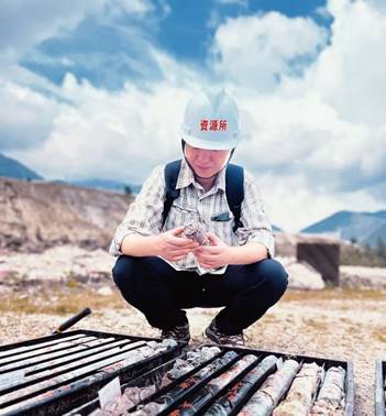 图1 工程首席科学家王登红研究员在野外现场查看钻孔岩心