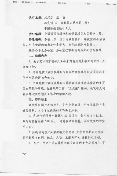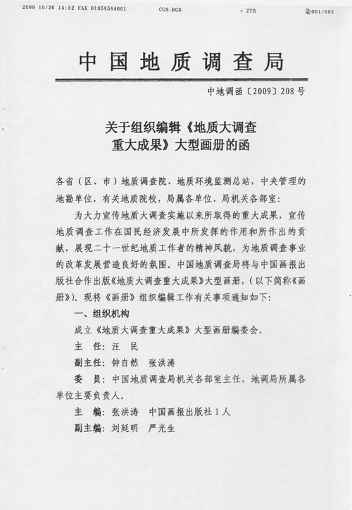 关于组织编辑《地质大调查重大成果》大型画册的函"的通知