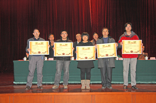 所2009年总结表彰大会于2月1日下午隆重举行,总结了2009年的工作、表彰了先进、展望了我所2010年的发展。会议由张佳文副书记主持,王宗起副所长宣布了关于先进科研团队,先进个人和文明处室的表彰决定,邢树文副所长宣读了2009年考核优秀人员名单,在雄壮的颁奖音乐声中,院士及所领导为获奖团队和个人颁发了证书和奖金。王瑞江所长做了总结讲话。三位院士也分别作了新年寄语,为我们鼓舞了士气!
