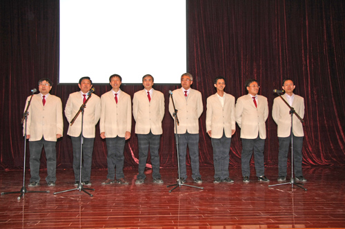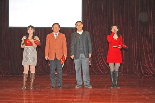 晚上八点,在《相亲相爱一家人》的背景音乐下,伴着大屏幕上播放的我所09年的所有科技进展、野外现场、职工文化活动的视频,拉开了我所2010年迎春团拜会文艺晚会的序幕。整台晚会洋溢着“大过年”的喜庆气氛,节目内容丰富多彩,为我所职工提供了一台视听的饕餮盛宴。我四位所领导均“亲自操刀”,倾情演出,歌唱水平堪称“业余中的专业”。研究生带来的相声《像个朋友》让大家捧腹大笑,且出人意料,相声的最后还表演了一段搞笑的舞蹈。邀请的“外援”歌唱家更是演唱专业,台下一片雷鸣般的掌声。《你做我猜》游戏环节,大家积极踊跃,笑料百出。其间穿梭的抽奖环节,更是彼彼将晚会的气氛推向高潮。我所的原创歌曲《我们是光荣的地质队员》唱出了地质人的心声。晚会的压轴表演是群舞《我爱你,中国!》,随着她们激情的表演,舞动的红扇,将晚会推向最高潮!最后,团拜会在《难忘今宵》的乐曲声中结束了。