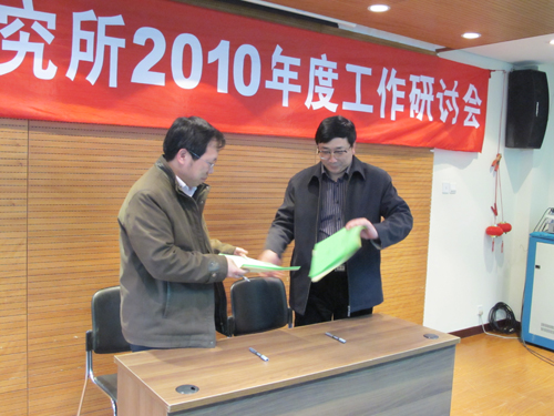 会议由所党委副书记、副所长张佳文主持。会上,传达学习了2010年全国地质调查工作会议、中国地质调查局2010年工作会议暨党风廉政建设工作会议精神,部署了我所2010年的主要工作;所长、党委书记王瑞江还与各部门代表分别签订了安全生产和综合治理责任书及反腐倡廉建设责任书。会上重点研讨了我所《“三定”方案征求意见稿》,在充分讨论的基础上进一步明确了我所的主要职责、内设机构和人员编制方案。