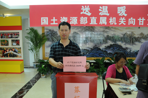 资源所党委在接到国土资源部向舟曲灾区捐款通知后,全所迅速动员,组织开展募捐活动。所领导班子带头每人捐款500元,我所退休老所长赵一鸣、普通退休职工秦淑英各捐出1千元。一个上午的时间捐款26650元,捐款人数达135人。现在正值野外作业高峰,许多职工在野外,就委托同事代捐。许多职工通过电视、报纸时刻关注灾区灾情,表示要努力做好本职工作,为支援灾区人民重建家园继续做贡献。