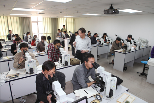 本次培训以增强我所年轻科技人员的岩石学基本技能,提高岩石手标本和薄片下的观察和鉴定能力为目的。培训内容包括三大岩类手标本及显微镜下的鉴定,同时对典型研究区的岩浆岩、沉积岩和变质岩的野外及室内观察进行了重点培训。地学院为本次培训提供了专业的教学仪器及良好的教学环境,四位具有长期野外和室内工作经验的教授全程做指导,参训学员收益颇丰。