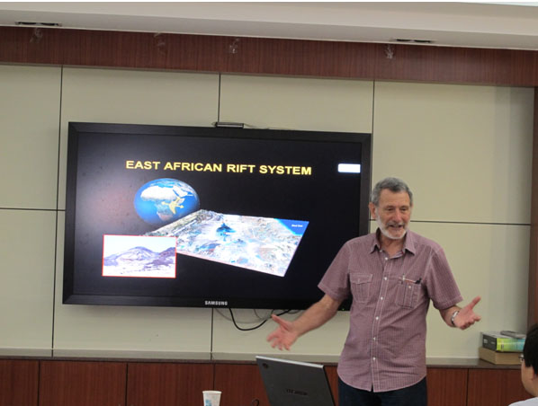弗兰克•皮拉吉诺博士以东非、中非西南-南部及澳大利亚典型地区为实例,详细的介绍了大陆裂谷系统的发生、发展过程,地幔柱成因及其成矿作用等。报告期间,弗兰克•皮拉吉诺博士与我所青年科研人员就大陆裂谷系统及其成矿作用进行了广泛交流和讨论。