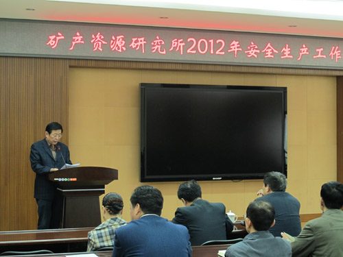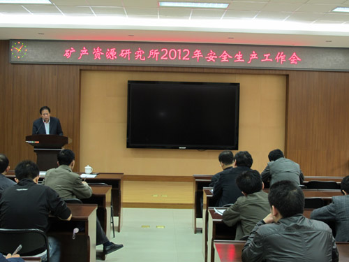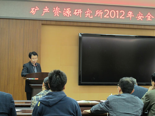 2012年4月24日,资源所召开2012年度安全生产工作会议,传达贯彻局安全生产工作会议精神,部署所2012年安全生产工作。所研究室、职能处室正副处长、正副主任、所安委会全体成员、部门安全员共40余人参加了会议。会上所工会主席、安委会副主任王新建传达学习了局党组副书记、副局长王研的讲话和局人教部赵奇主任在中国地调局安全生产工作报告;办公室主任赵余对所2012年安全生产工作做了工作部署;所党委副书记、副所长张佳文主持会议并作了重要讲话。