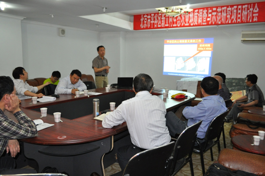 为贯彻落实中办、国办《关于进一步加强新形势下农村精神文明建设工作的意见》和首都文明办《关于进一步深入开展“城乡统筹、文明先行”主题社会活动的通知》要求,巩固和扩大城乡共建活动的成果,进一步发展城乡精神文明建设的新局面,资源所组织相关领域科学家实施了《 北京市平谷区生态农业地质调查与示范研究》项目,项目组把示范区划分了89个区块,对每个种植水果区块的土壤进行取样、分析化验,测试了水果对人体有益的矿物质,对土壤结构进行了分析,提出了合理施肥、浇水的科学建议,同时建立了89个区块动态数据库,取得了阶段性成果,并对下一步工作进行了研讨。