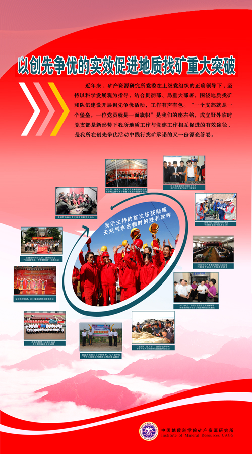 为庆祝中国共产党成立91周年,喜迎党的十八大胜利召开,积极营造部直属机关第二次党代会召开的浓厚氛围,部直属机关党委组织开展了机关党建工作成果展活动,在46家参展单位中,我所 “以创先争优的实效促进找矿重大突破”为主题的展板获得此次党建成果展评二等奖。