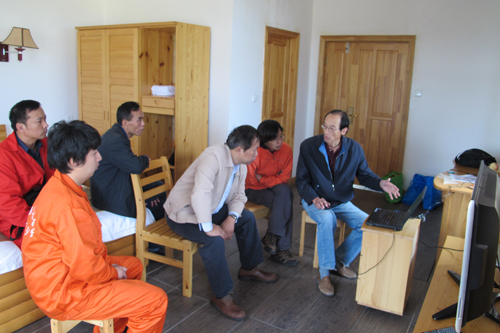 漠河天然气水合物项目mk-2井,位于黑龙江漠河盆地西北部,设计井深1600米。钻探工作始于今年5月下旬,8月中旬完钻,完钻井深1700.83米。超设计井深100余米,超额完成了钻探任务。8月26日我所张佳文副所长一行3人在工地听取了项目负责人赵省民研究员的汇报并到机台检查指导工作。