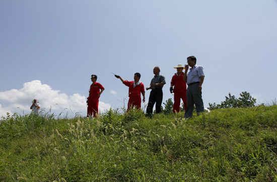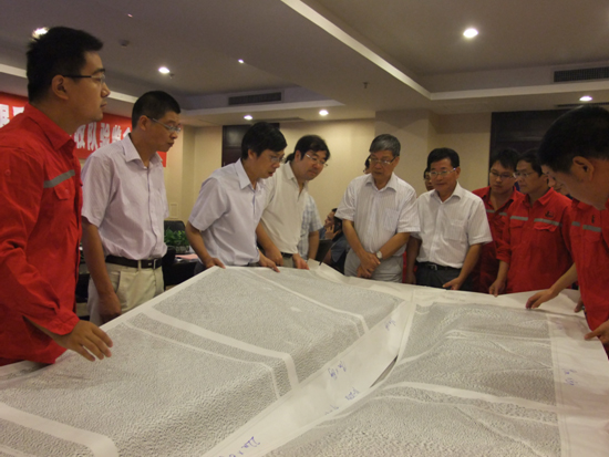 专家们在检查野外采集试验单炮资料