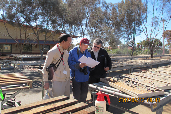 2012年9月6日,中国地质科学院矿产资源研究所“澳洲—印度克拉通成矿区地质背景与成矿规律研究”项目组江思宏研究员、白大明研究员和硕士研究生梁清玲一行在西澳大学Leon Bagas教授的陪同下,对西澳卡尔古利地区的金矿、镍矿及区域地质情况进行了野外地质考察。