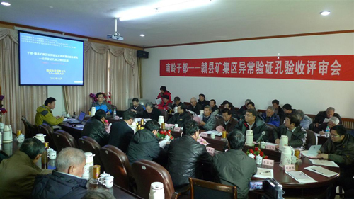 2012年12月24日,深部探测技术与实验研究专项办公室会同矿产资源研究所、勘探技术研究所组织有关专家在江西省于都县盘古山科学钻探现场对南岭科学钻探金属异常验证孔(SP-NLSD-2)进行了野外验收,专家组在听取了专家组在听取了验证孔承担单位钻孔施工汇报并到岩心库、钻探施工现场进行查验后,对该钻孔的施工质量等表示满意,并且对钻孔达到的科学目标给予了充分肯定,对钻孔中揭露的厚大矿体和找矿线索等给予了高度的评价,是一口高质量的优质孔,专家组一致同意终孔验收。参加南岭科学钻探异常验证孔的终孔仪式有来自于中国地质科学院(陈毓川院士、董树文副院长)深部探测技术与实验研究专项办(陈宣华主任、刘志强、李杰)、中国地质科学院矿产资源研究所(王宗起副所长、吕庆田研究员、王登红研究员、陈郑辉副研究员)、中国地质科学院勘探技术研究所(谢文卫研究员)、江西省地质矿产勘查局(余忠珍副局长、杨明桂教授级高工)、江西省地矿局赣南地质调查大队(朱祥培大队长、李诗斌副大队长、陈永忠副大队长、曾载淋总工、黄敏华副总、张永忠副总等)、江西省地矿局901地质大队(朱景平书记、黎荣福副队长、胡建军副队长、漆绍林总工程师、邵光建院长等)、山西省地球物理化学勘查院(周新鹏)和江西盘古山钨业有限公司(邱国斌书记、李昌明副总等)的有关领导、专家,而且也邀请到全国30个省、市、自治区参加“中国矿产地质志研讨会”的地质老专家一行,约60多人。
