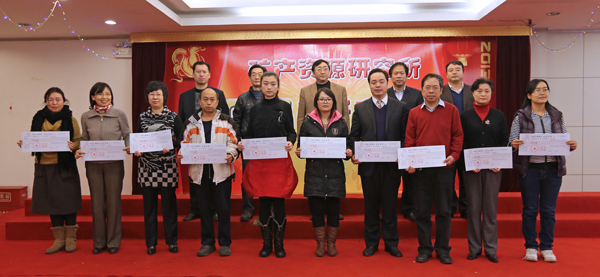 为总结工作、展示成果、表彰先进,增强凝聚力、弘扬所文化,2012年所设置了特别贡献奖、十项重要成果项目、先进科研团队、文明处室、先进个人、优秀职工等奖项。王宗起副所长宣读了《关于表彰2012年度资源所十项重要成果项目和先进科研团队、文明处室、先进个人的决定》,邢树文副所长宣读了获奖单位和个人名单,所领导班子全体成员上台为获奖者颁奖,并送上热烈的祝贺。