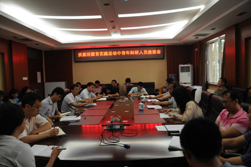 根据资源所开展党的群众路线教育实践活动实施方案和做好学习教育、听取意见工作安排的要求, 8月20日我所组织中青年科研人员,召开了以为民务实清廉和反对“四风”为主题的征求意见座谈会。所党委书记、所教育实践活动领导小组组长张佳文主持座谈会,副所长、教育实践活动领导小组成员邢树文、职能部门的正副处长参加了座谈会。