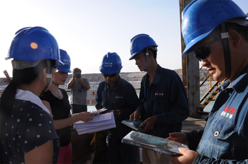 所党委办公室和职能部门领导亲身体验了野外科研环境的恶劣和野外工作条件的艰辛,因地制宜、就地开展了教育实践活动的座谈会。她们深入到勘探钻井现场,走到工人中间去,将学习素材亲手送到工人手中,并与大家交流了群众路线学习精神和事项要求;她们与项目组成员在烈日下,坐在荒漠人烟的盐翘地貌上进行了面对面的交谈,传达了教育实践活动的精神并征求了野外科研一线工作存在的现实难题,取得了真真正正的一线意见与建议,用群众路线教育实践活动提供了下一步在罗布泊开展野外科研工作所需的条件保障。