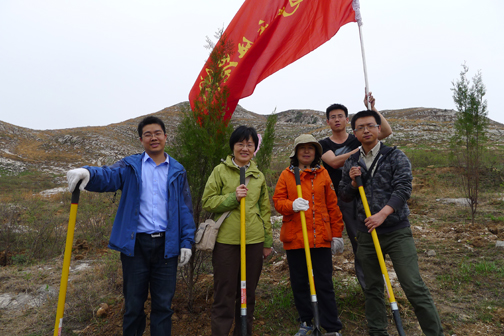四月的北京春风拂面,万物复苏。大家一到植树现场,有人拿铁铲,有人拿树苗,立即开始了热火朝天的植树活动。铲土扶苗,忙得不亦乐乎,经过大家共同努力,油松、白蜡等一颗颗充满生机和希望的树苗被植入坑内。种完树后,我们又为他们浇上了生命之水。大家看着自己亲手种下的树苗迎风挺立,无一不露出幸福的笑容。最后我们与小树苗合影,以此结束了本次植树活动。