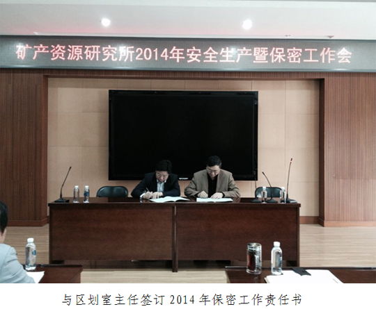 会上王瑞江所长与研究室负责人代表分别签订了2014年安全生产责任书和保密工作责任书。 (曹瑞欣 供稿)