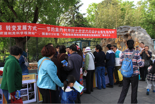 钾是作物生长过程中不可或缺的元素,在这万物复苏的春天,钾盐课题组将自己的工作特色与此次地球日的主题 “珍惜地球资源,转变发展方式——节约集约利用国土资源,共同保护自然生态空间”相结合,活动由悬挂横幅、摆放展板、发放宣传材料和现场解答四个部分对钾盐相关知识进行宣传介绍。