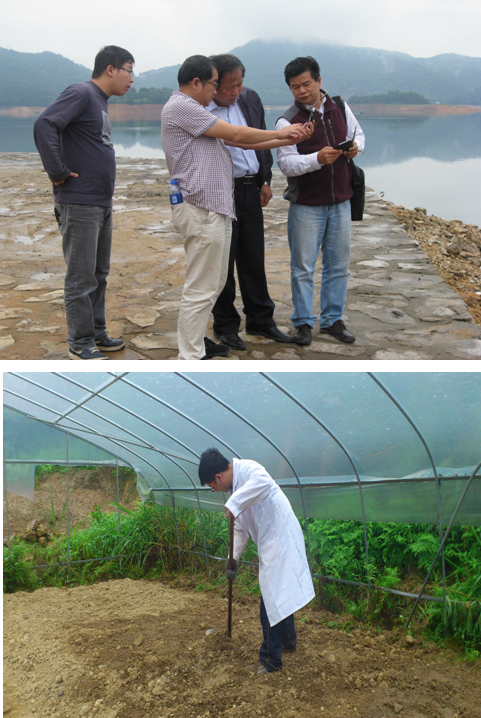 该课题自2012年正式实施以来,研究团队在充分分析研究区域地球化学和多目标地球化学调查资料基础上,经过现场踏勘,选定了福建省晋江流域作为Pb元素缓变型地球化学灾害研究区,选定福建省泉州市德化县某Hg污染场地作为修复示范区,并开展了大量的野外采样、室内模拟和分析化验工作。截至目前,3个专题已基本完成任务书的要求,进展顺利,取得了一些重要的阶段性研究成果。其中最为引人注目的是,经过修复后,指示植物空心菜中Hg元素的含量降低了约65%。