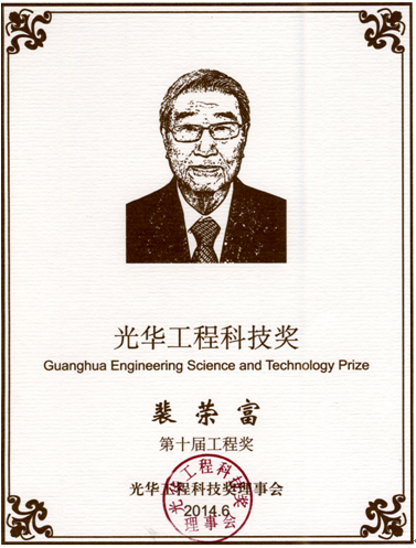 2014年6月11日,第十届光华工程科技奖在北京颁发,共有29位院士和专家获奖。中国工程院院士、中国地质科学院矿产资源研究所研究员裴荣富荣获光华工程科技奖第十届工程奖。