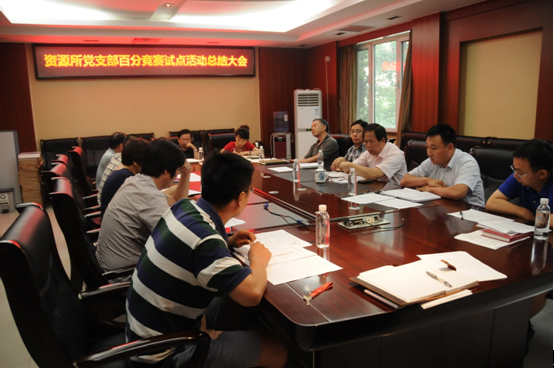 日前,中国地质科学院矿产资源研究所召开党支部百分竞赛试点活动总结会,以此庆祝建党93周年。党委书记张佳文出席会议,党委办公室副主任单巍主持会议,十二个党支部的书记参加了会议。