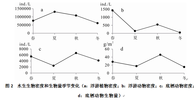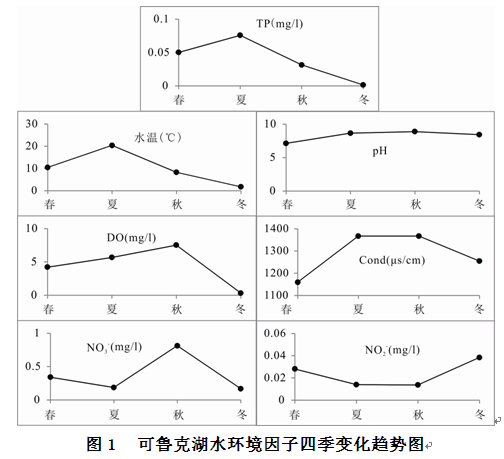 目前,项目通过4个季节的调查采样,顺利完成了可鲁克湖四季水环境因子和生物群落演替的调查研究。水环境因子(图1)和生物群落演替均表现出了明显的季节变化。
