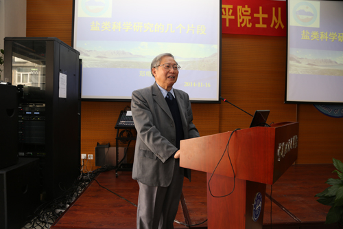 受郑绵平院士邀请,李浩研究员、邓天龙研究员和赵元艺研究员分别作了题为《罗布泊盐湖开发情况汇报》、《盐湖卤水体系相平衡与热力学性质研究》和《西藏热水活动中铯的富集过程》的学术报告。郑绵平院士以《盐类科学研究的几个片段》为题,介绍了他的科学研究方法及科学研究成果。