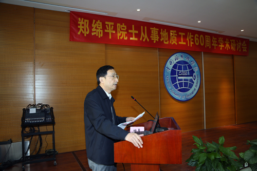 中国地质科学院王小烈书记发言并强调,60年来,郑绵平院士始终奋战在野外地质工作和地质科研第一线,扎根于青藏高原这块热土。郑绵平院士热爱地质科学事业,辛勤工作、严谨治学,生活简朴、平易近人,诲人不倦、甘为人梯,勇于创新、甘于奉献,是中国地质科学院的骄傲,是我们年轻一代地质科学工作者的学习楷模。中国地质科学院的同仁会以今天简朴的学术研讨会为契机,大力弘扬以郑绵平院士为代表的老一辈地质学家的优良传统和献身精神,为发展祖国的地质科学事业而不懈奋斗。
