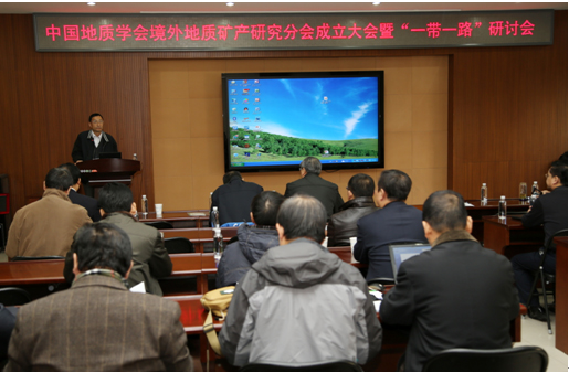 2014年12月4日,中国地质学会境外地质矿产研究分会在京召开成立大会暨“一带一路”研讨会。来自中国地质调查局、中国地质科学院、有色金属矿产地质调查中心、中央地质勘查基金管理中心、中国冶金地质总局、中化地质矿山总局、中国地质大学、吉林大学、中国科学院、中国石油勘探开发研究院等单位的40多位专家学者、工程师、企业家参加会议。境外地质矿产研究分会挂靠单位、中国地质科学院矿产资源研究所所长傅秉锋主持会议。