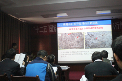 10位课题负责人对课题近一年来的研究进展、实施以来的取得阶段性研究成果和预算执行情况进行了汇报。包括:“宁芜矿集区深部控矿结构3D探测与深部勘查技术集成示范”、“安吉-德兴铜钼多金属矿带成矿规律与勘查模型”、“江西九瑞矿集区控矿地层和岩体三维探测与找矿预测研究”、“贵州务正道地区铝土矿勘查技术集成与示范研究”、“陕西山阳-柞水矿集区斑岩铜钼金矿深部找矿模式及勘查技术集成与示范”、“河南生栾川铅锌矿区深部资源勘查技术集成研究”、“赣南崇义-于都矿集区深部资源勘查技术集成与示范”、“湖南锡田地区深部找矿岩体空间结构与深部成矿预测”、“山东莱州-招远金矿区构造-蚀变-矿化网络结构及勘查技术集成”、“广西田林-大新地区锰矿成矿规律与深部勘查技术研究”等。