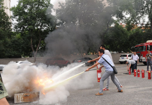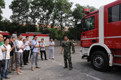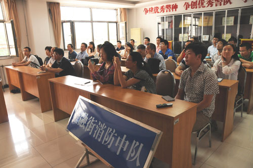 2015年6月9日上午,我所安全员与地科院其他各所安全员一起到北京市武警总队金融街消防中队参加了为期半天的消防培训和实际演练。在金融街消防中队,首先由中队长进行了消防知识培训,对火灾的形成、遇到火灾的自救方法、预防火灾的措施等方面进行了详细的讲解。随后,所有参与培训人员到训练场分别进行了云梯逃生、试穿消防服、使用水枪水带等体验项目,并学习及亲自使用干粉、二氧化碳、水性等各种类型灭火器对火源进行扑灭。