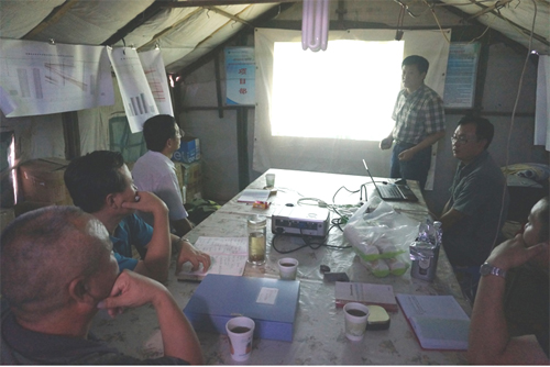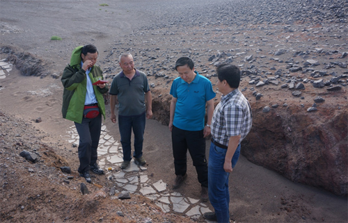 检查组对项目组野外工作进展予以充分肯定,认为项目组全体成员,克服高温酷暑,高质量高标准地开展野外工作。傅秉锋所长在听取汇报和现场考察时指出:在茫茫戈壁下发现拉伊克勒克铜铁矿是科技引领下覆盖区找矿的典型实例,也是地调项目和地方基金项目完美衔接、缩短找矿周期的示范,具有重要的推广意义。李基宏副所长指出:拉伊克勒克矿床的发现,说明新疆环准噶尔成矿带及相邻内蒙范围分布的浅覆盖区具有良好的找矿前景,希望项目组加强有效技术方法组合的总结提升,为类似景观区找矿提供技术支撑。最后,检查组对项目组下一步工作提出了要求:一是要继续扩大矿床储量,评价伴生有益元素规模;二是要总结找矿规律,提出成矿模型;三是认真总结方法技术,提出一套覆盖区找矿行之有效的方法技术流程。