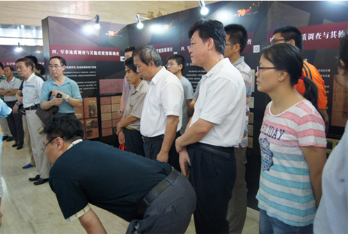 7月29日,资源所党委委员、副所长张佳文同志带领所内党员干部及部分职工约20余人参观了地调局举办的“纪念中国人民抗日战争暨世界反法西斯战争胜利70周年地质资料展”。 通过引导员翔实的讲解以及认真参观学习后,大家全方位、系统的从地质调查、矿产勘查开采的角度认识了我国地质工作和地质工作者为抗日战争胜利而做出的巨大贡献。新颖的视角、翔实的史料让参加展览的同志受到了一次深刻地爱国主义和革命传统教育。(党办 供稿)