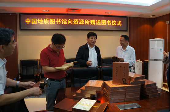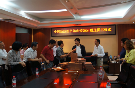2015年9月15日,中国地质图书馆馆长刘延明一行向资源所赠送了《中国矿产志》图书。资源所所长傅秉锋、办公室、地调处等相关人员参加了此次赠书活动。