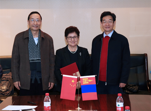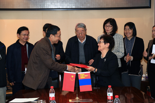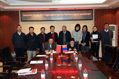 双方代表进行了亲切会谈,就各自的学科特点和团队建设做了简要介绍。傅秉锋所长提出,我国目前开展的“一带一路”地质调查工作中,资源所承担的部分工作任务需要与蒙古国共同开展地质调查研究和野外考察工作,期待着与Ochir Gerel教授带领的研究团队通过人员互访、联合发起并实施科学研究项目、交流科学技术信息等方式开展地学研究的合作,促进双方的地学科研水平更上一个台阶。会上,资源所与蒙古科技大学签署了合作协议,并向Ochir Gerel教授颁发了资源所聘任证书,正式聘请Ochir Gerel教授成为资源所客座教授。