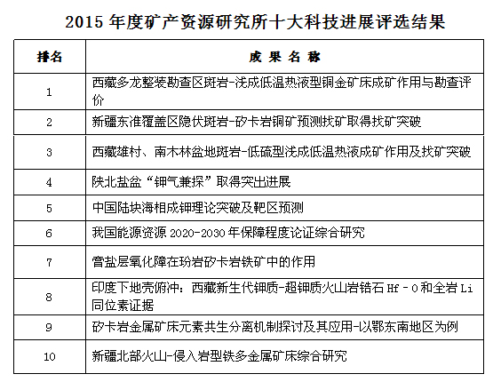 2015年12月9日,资源所召开2015年度学术年会,与会科学技术委员会成员评选出资源所2015年度十项优秀成果。 此次参与学术交流的成果共有17项,交流内容涵盖了成矿理论基础研究、找矿勘查技术及应用研究、找矿重大突破、矿产资源战略以及环境修复的理论与技术五个方面。一批青年科学家崭露头角,深受好评。 根据地调局要求,所科学技术委员会推荐排名前2项成果,参加中国地质调查局“十大科技进展”的评选。(向君峰 供稿)