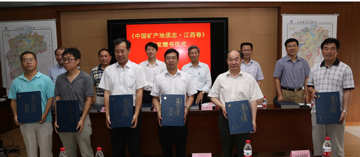 2016年7月22日,中国地质调查局在北京举行《中国矿产地质志•江西卷》首发赠书仪式。中国地质科学院矿产资源研究所和江西省地矿局作为项目组织实施单位对中国地质调查局有关部室和直属单位,六大地调中心,部分省地调院,化工、建材、核工业等有关行业单位进行赠书。中国地质调查局李金发副局长出席了首发赠书仪式并讲话,参加仪式的还有中国地质调查局总工室、基础部、资源评价部等有关部室代表,项目负责人陈毓川院士、中国地质科学院矿产资源研究所谢国刚副所长、地质出版社顾晓华社长、江西地矿局余忠珍副局长、中国矿业报和国土资源报记者等,赠书仪式由资源评价部张生辉副主任主持。