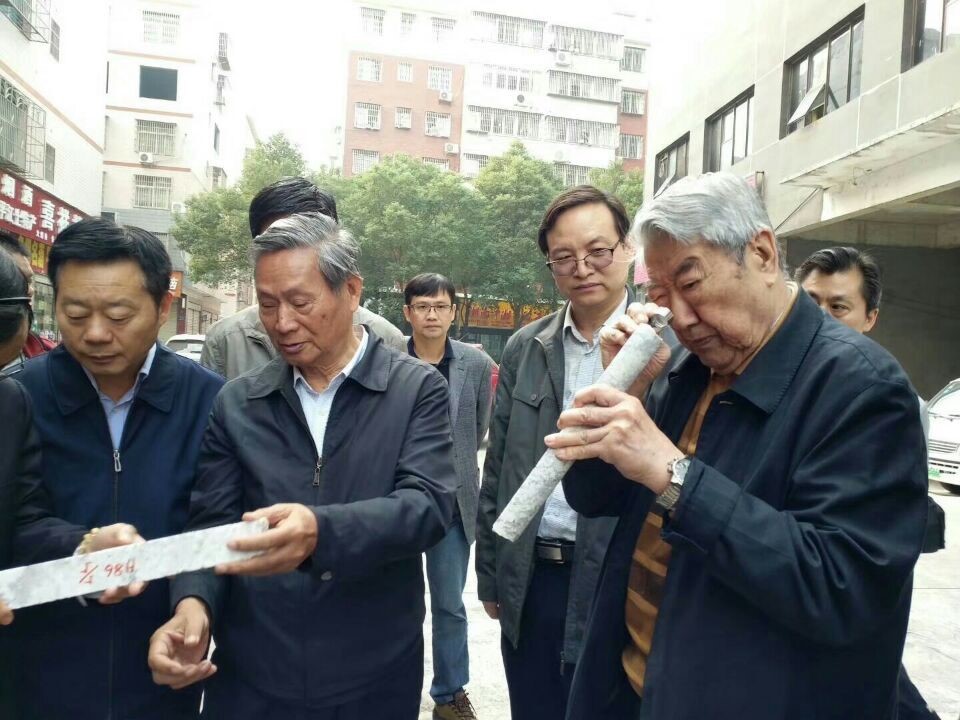 陈毓川院士和裴荣富院士一起观看仁里钽铌矿床岩心