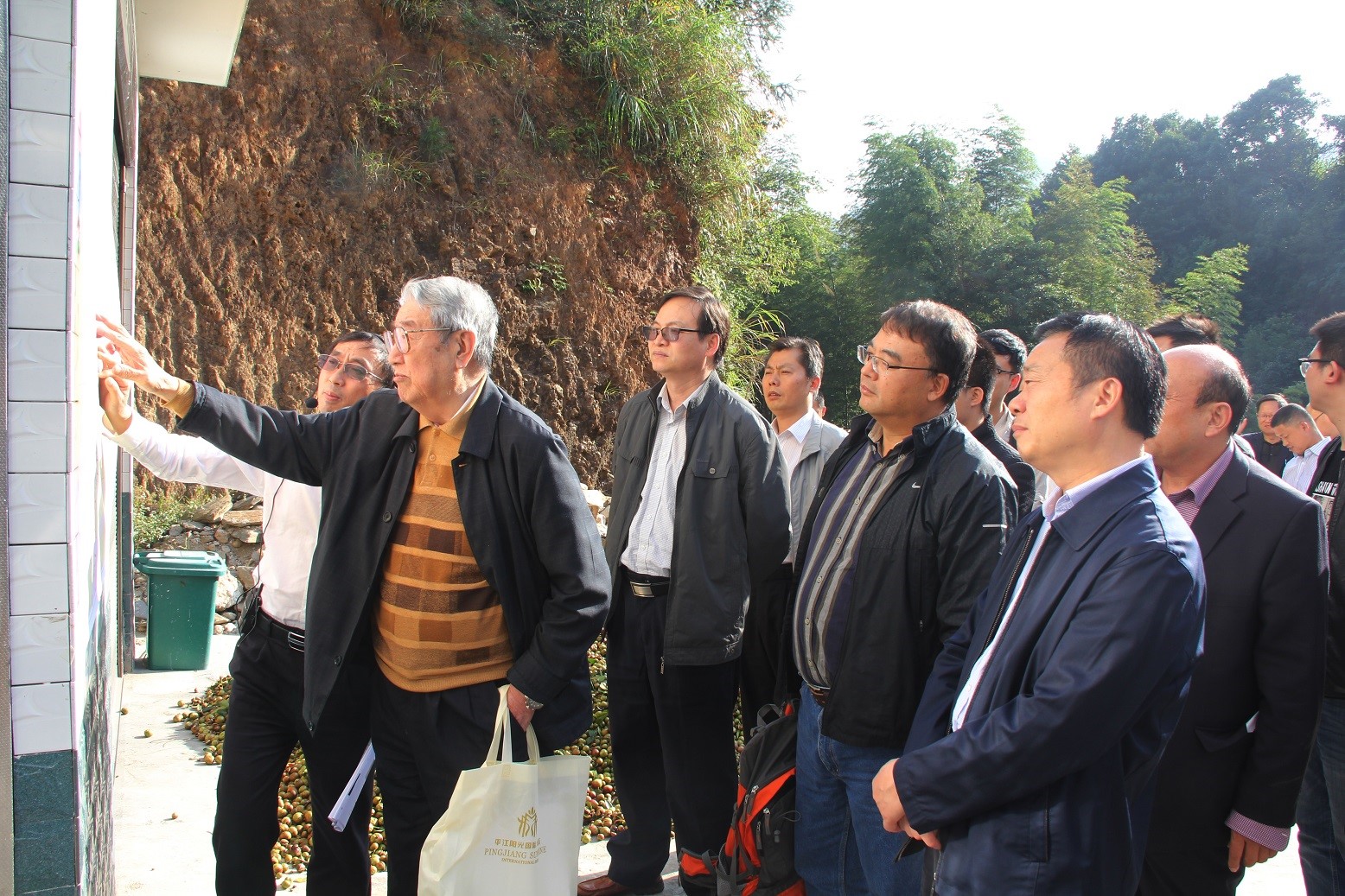 裴荣富院士在仁里矿床5号脉露头与湖南核工业地质局领导和技术人员交流