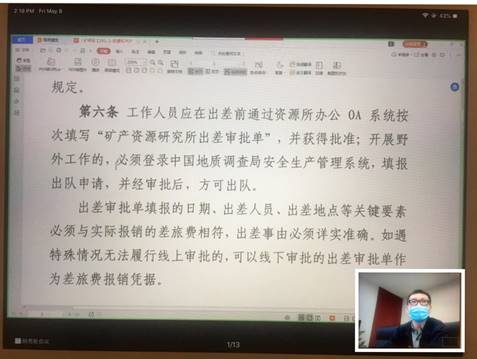 2020年5月8日,自然资源部中国地质调查局所属的中国地质科学院矿产资源研究所财务处,分上午和下午两批次与近期有出队计划的业务人员,开展了有关新版差旅费办法的座谈,其中下午的财务座谈会在大数据中心的大力支持下,首次以Welink的视频会议形式开展。据统计,上下午两次会议共约80余人参加。