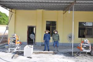 项目组在出队前,对主要项目成员进行了安全培训,主要学习内容有《地质勘查职工安全生产教程》《地质勘查安全生产法规汇编》《地质勘查安全生产实务指南》(野外篇)《地质调查安全手册》(野外篇)等。项目组进驻矿山现场以后,项目领队又对学生、临时雇工人员进行再度培训,要求大家提高安全意识,遵循相关安全制度,确保保证人员安全。根据项目主要工作内容,具体的安全生产措施为,为每位成员配备风扇、劳保服、口罩和耳塞等防护设备;对岩心劈心机定期维修和清洗,及时更换老化的零件,定期清洗粉尘等。