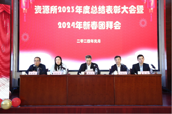 玉兔辞岁展风采,金龙腾飞向未来。1月26日中国地质科学院矿产资源研究所(以下简称“资源所”)在中国地质科学院京区地质科研实验基地举行2023年度总结表彰大会暨2024年新春团拜会。党委书记陈仁义作了2023年度工作总结报告,所长王登红主持会议。郑绵平院士唐菊兴院士,所领导班子成员杨海涛、宋扬、陈其慎出席会议,全所干部职工180余人欢聚一堂共迎新春。
